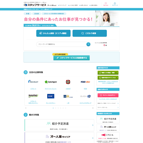 - 求人数は国内最大級で高時給から未経験OKまで幅広い案件が揃う!希望に合う求人が見つかる